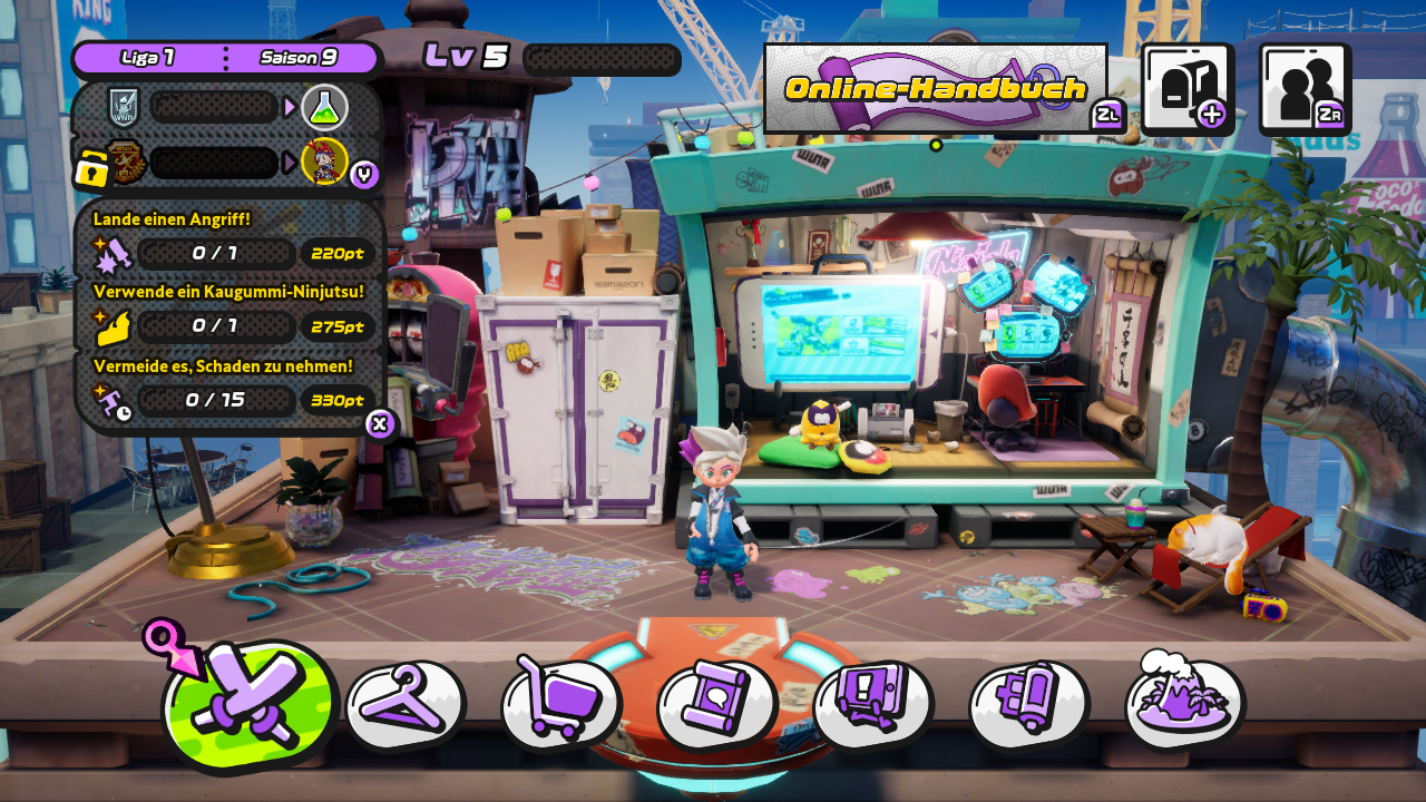 In dem Versteck kannst du den Fortschritt des Ninjala-Passes oder des Gratis-Passes sowie den Missionsstatus überprüfen.