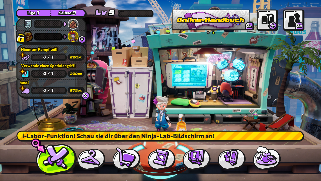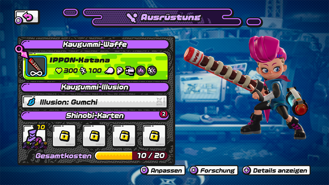 Im Ninja-Kaugummi-Labor kannst du an Kaugummi-Waffen forschen, um ihre Leistung aufzuwerten.