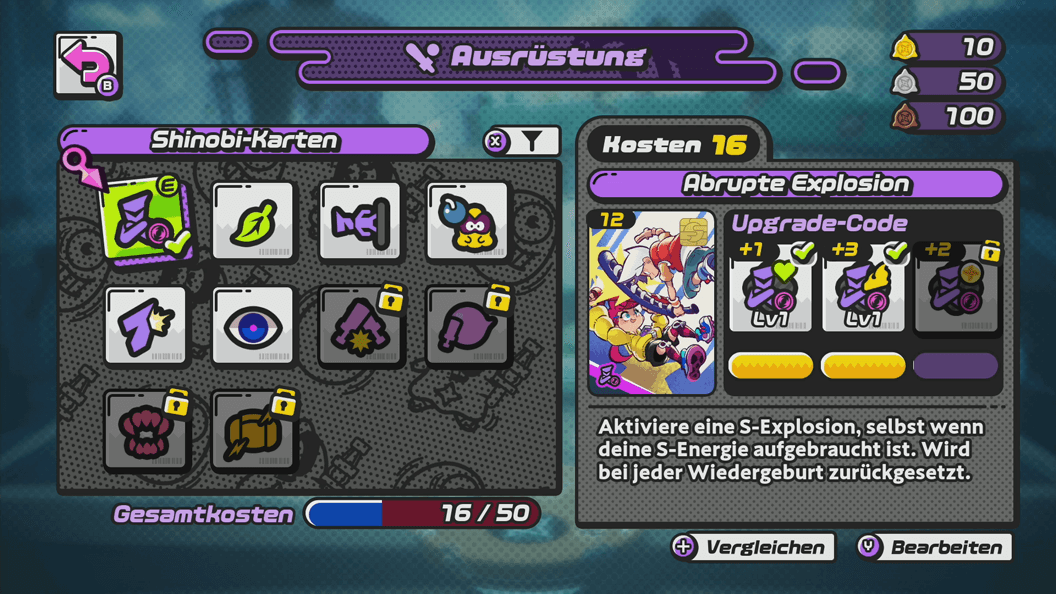 Mit Shinobi-Karten kannst du neue Kräfte freischalten und ersetzen sowie Upgrade-Codes ändern und verbessern.