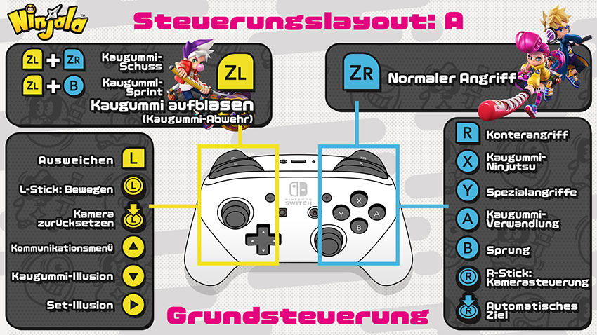 Drücke beim Blasen einer Ninja-Kaugummi-Blase die ZR-Taste, um einen Kaugummi-Schuss abzufeuern.
