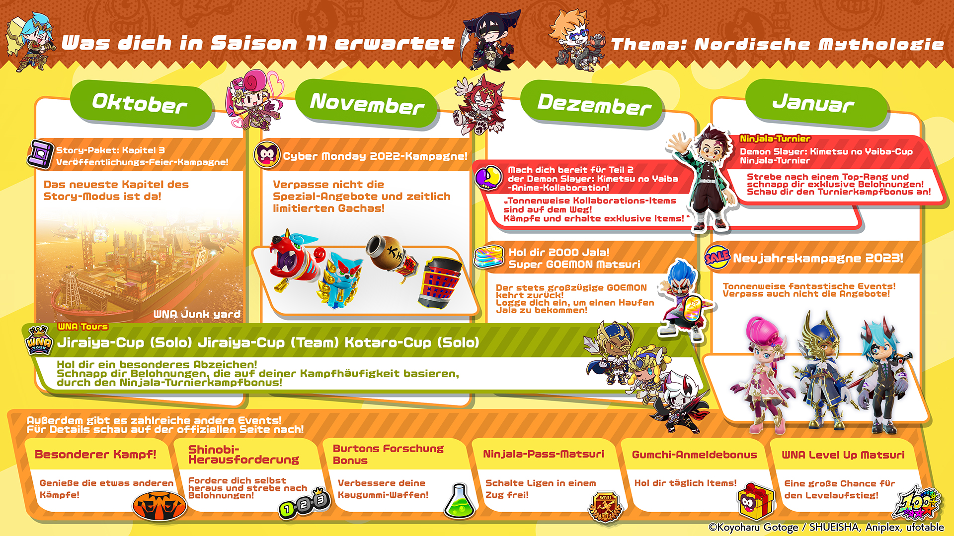 Es erwarten dich auch diese Saison Unmengen an Ereignissen und Kollaborationen! Mach dich in Saison 11 in Ninjala auf Unmengen an Spaß gefasst!