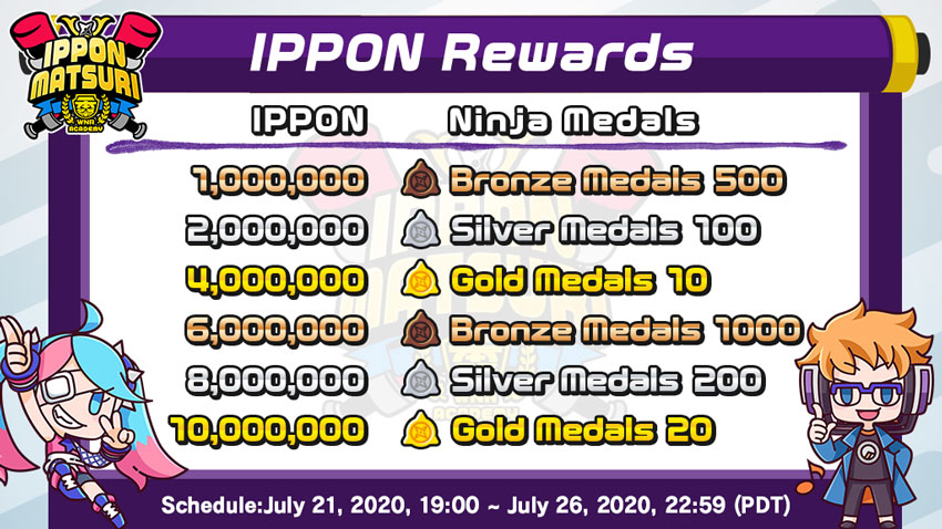 Rewards will be distributed to all based upon the total number of IPPON achieved by all players.