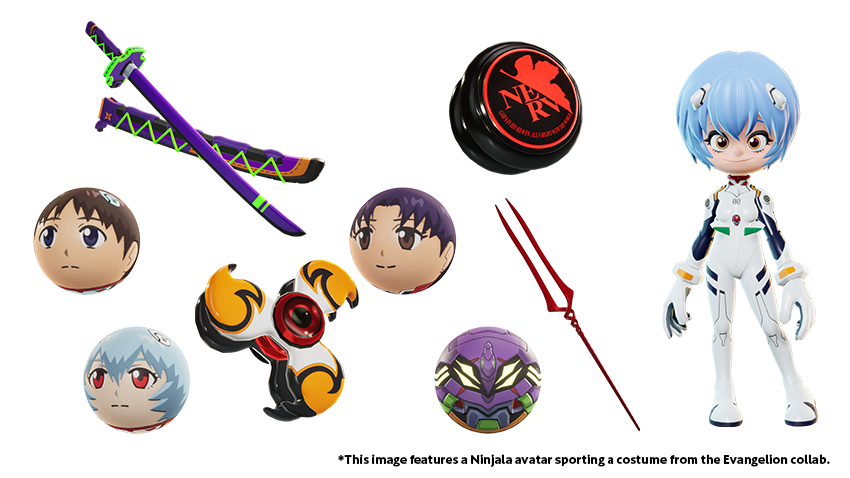 Collab avatar items will be available as Shinobi Challenge rewards during the collaboration between Evangelion and Ninjala!