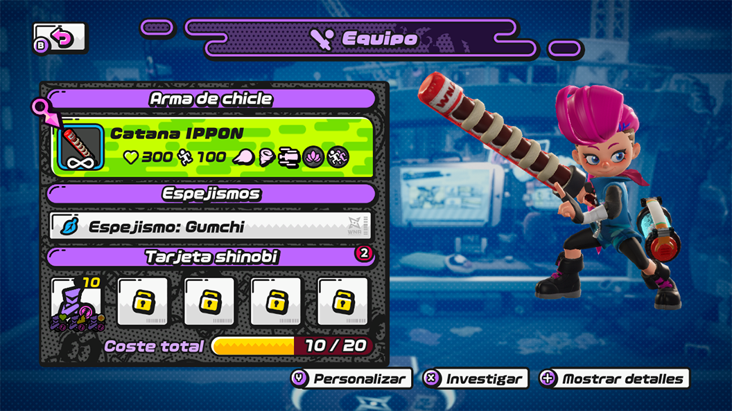 Al ganar efectos de investigación, podrás cambiar los ataques especiales de tus armas de chicle por especiales alternos.