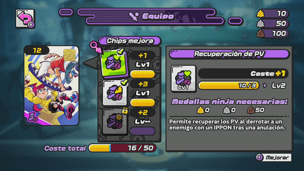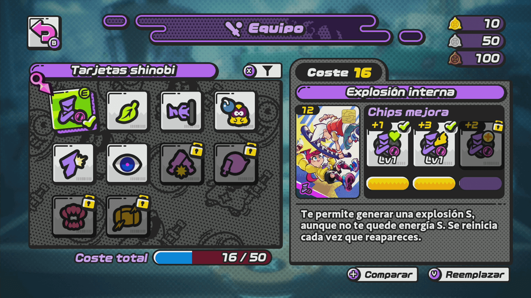 Las tarjetas shinobi te permiten desbloquear o sustituir nuevos poderes, además de modificar y mejorar los chips de mejora.