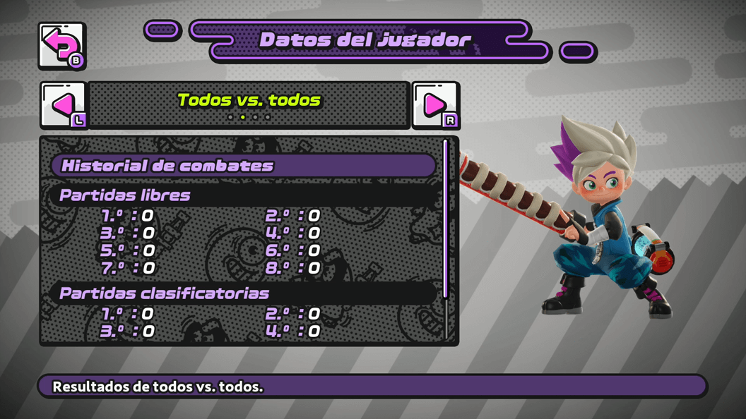 Desde esta opción podrás ver los resultados de los combates todos vs. todos en los que hayas participado.
