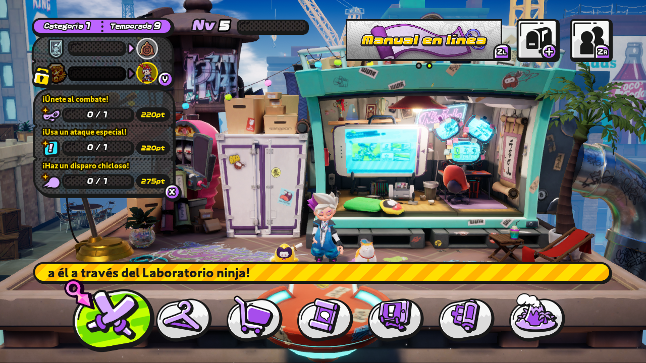 En el laboratorio de chicle ninja, puedes investigar armas de chicle para mejorar su rendimiento.