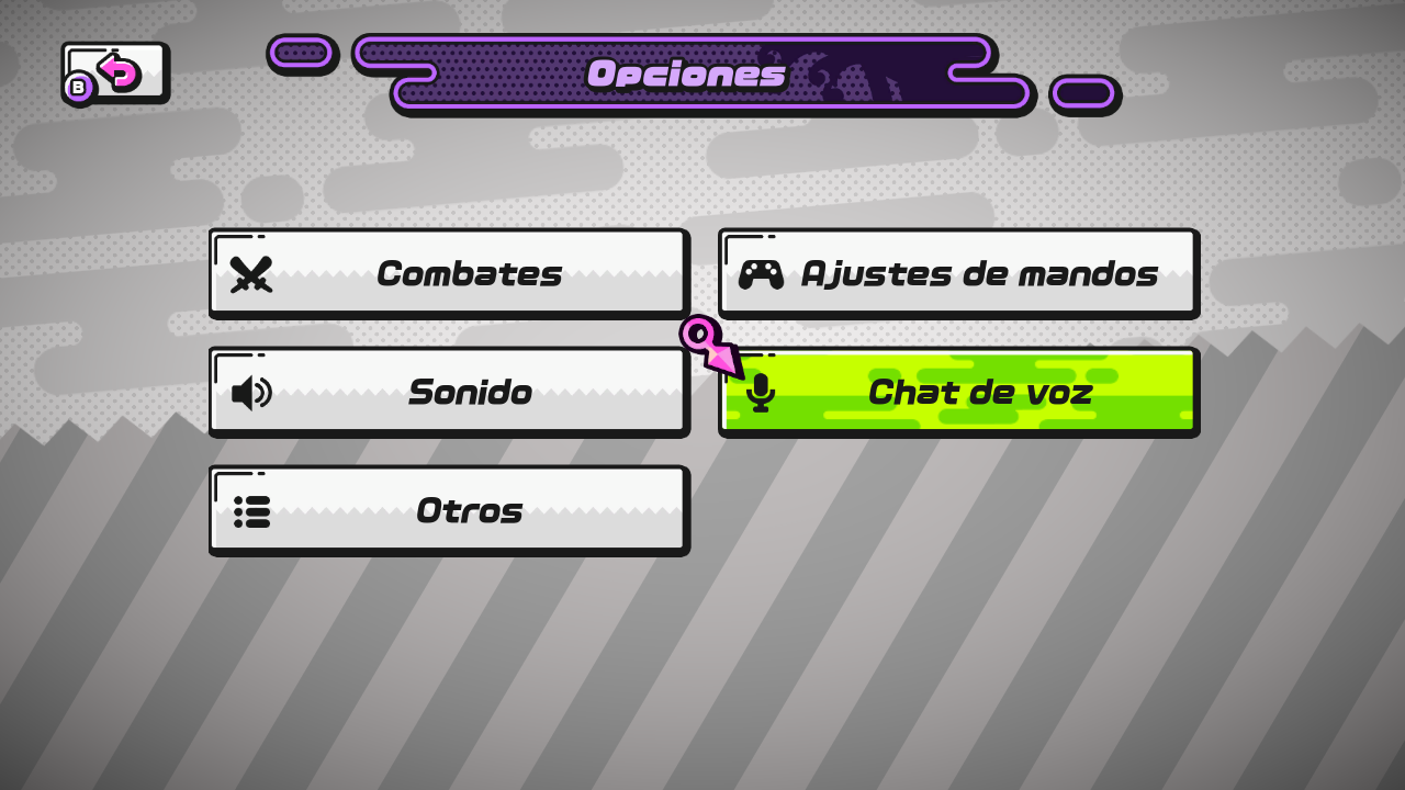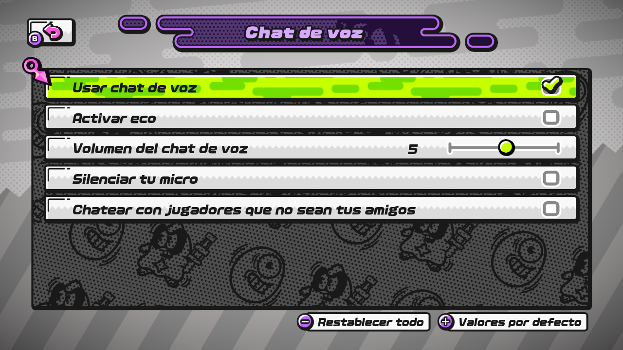- Volumen del chat de voz: ajusta el volumen del chat de voz.