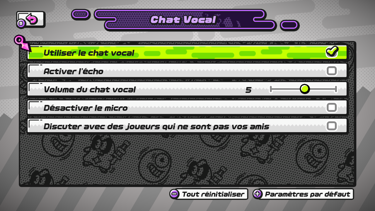 - Volume du chat vocal : Règle le volume du chat vocal.