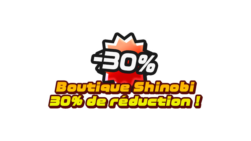 30% de réduction sur tous les articles de la boutique shinobi pour une durée limitée !