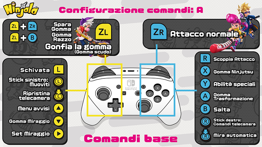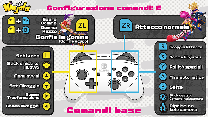 Inoltre, ci sono attacchi come Scoppia Attacco e Abilità speciali che variano a seconda della tua arma di gomma.