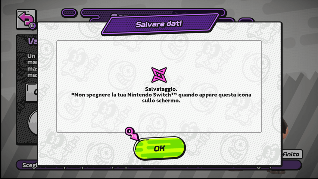 Durante il salvataggio apparirà un simbolo shuriken. Non spegnere il dispositivo quando appare il simbolo shuriken.
