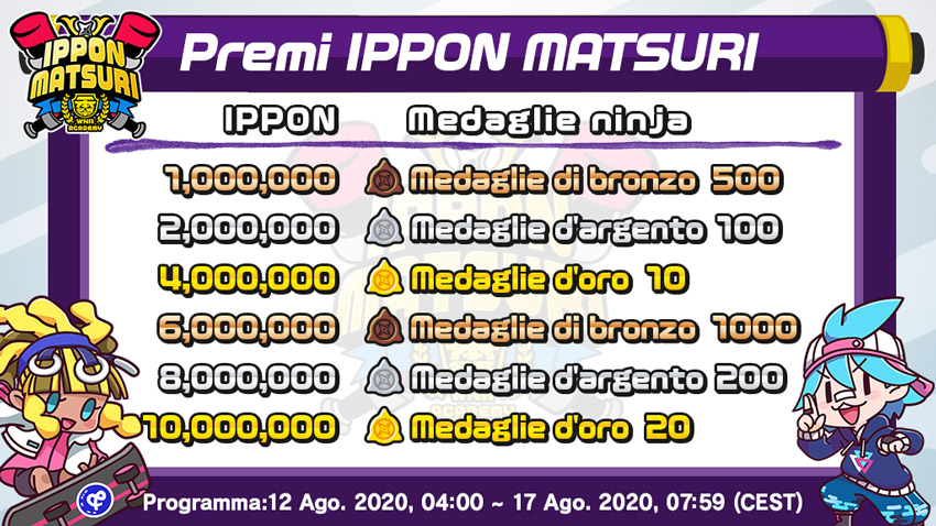 * Gli aggiornamenti dell'attuale numero totale di IPPON raggiunti verranno periodicamente segnalati sui canali ufficiali dei social media di Ninjala.