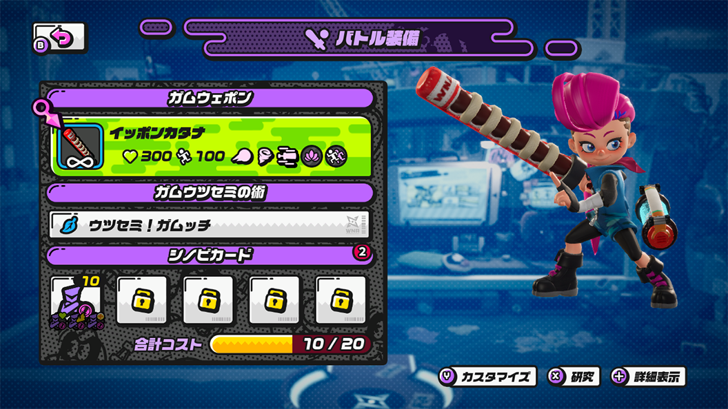 研究効果を得ることで、ガムウェポンのスペシャルを「ウラスペシャル」と入れ替えることができます。