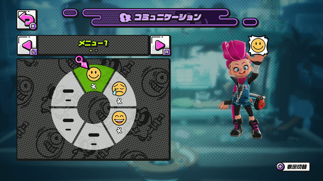 バトル中に使用できるエモーションとステッカーのセットを設定できます。