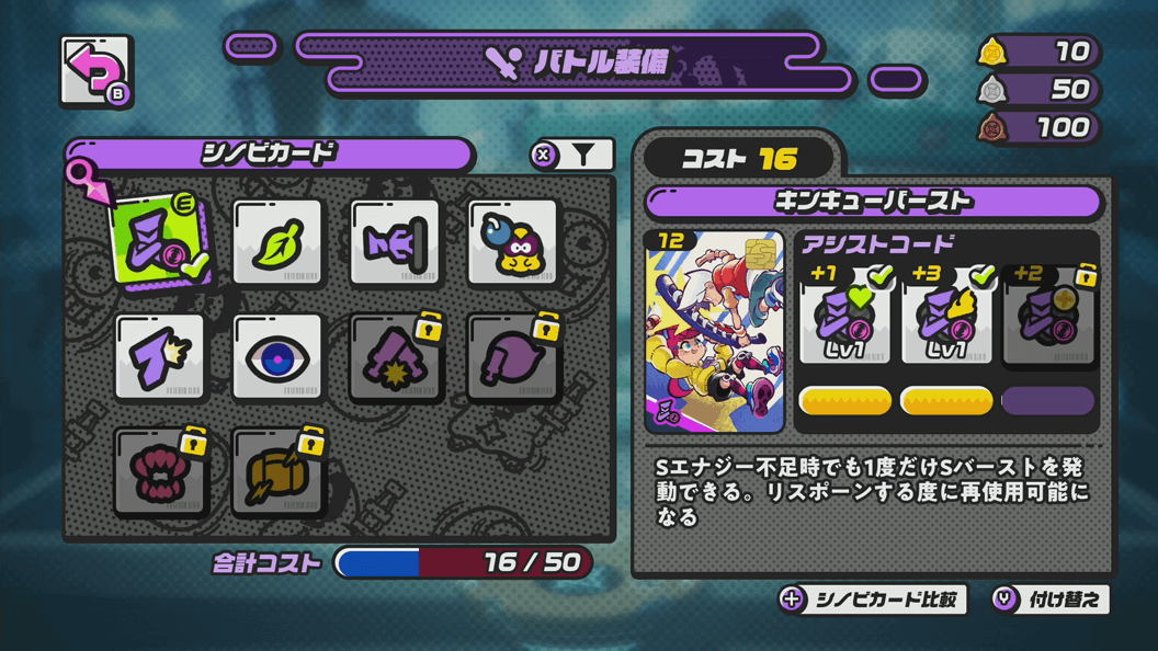 シノビカードは新たな能力の開放や付け替え、アシストコードの変更、強化などもできます。