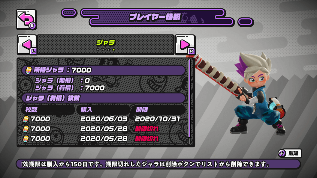 自分の戦績、有償ジャラの使用期限、経験値ブーストの状況が確認できます。
