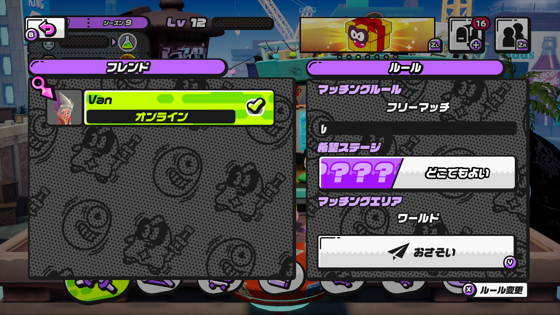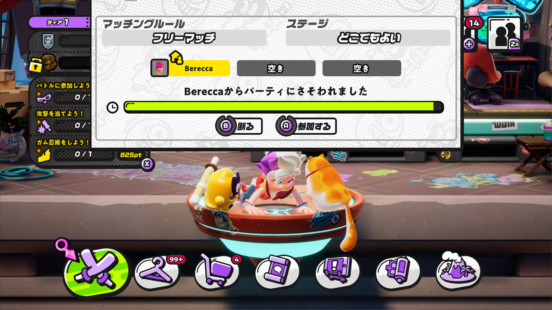 アジトにいながら、フレンドを最大3人まで同時にパーティに招待することができます。