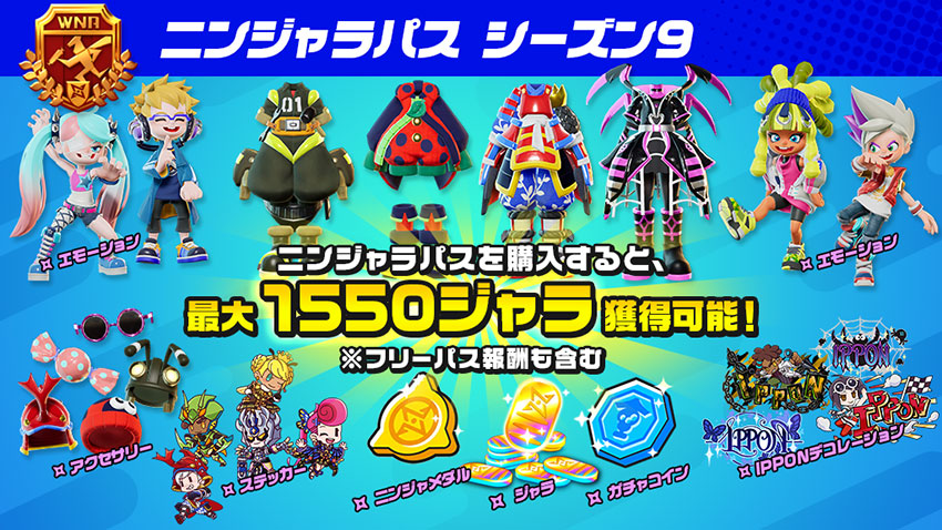 ニンジャラパスはもっと豪華!ニンジャラパスを購入すると、シーズンを通して最大で1350ジャラが獲得できます。