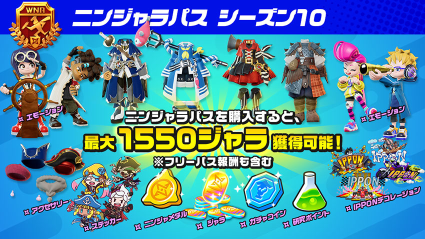 ニンジャラパスはもっと豪華!ニンジャラパスを購入すると、シーズンを通して最大で1350ジャラが獲得できます。