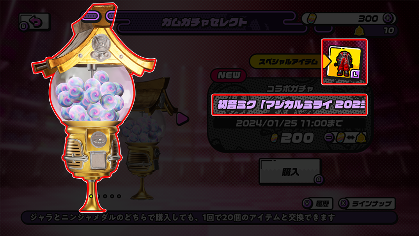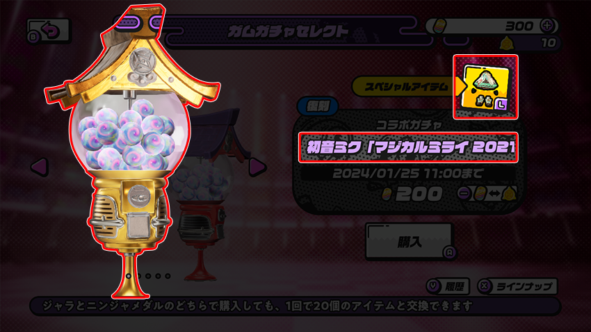 コラボ期間中、『初音ミク』とコラボした特別なコーデやニンジャガムがラインナップされたガムガチャが販売されます。