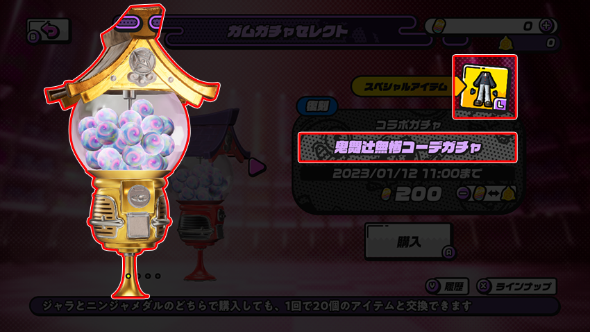 コラボ期間中、アニメ「鬼滅の刃」とコラボした特別なコーデやニンジャガムがラインナップされたガムガチャが販売されます。