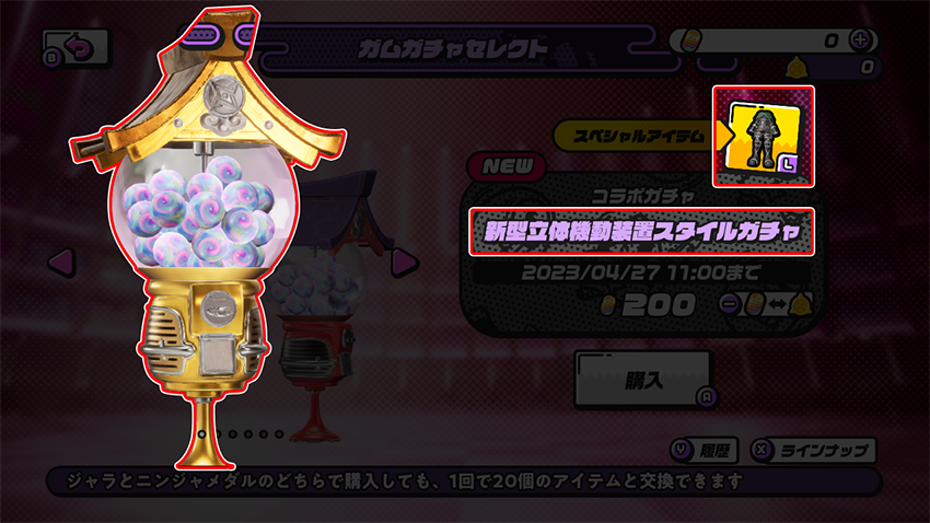 コラボ期間中、TVアニメ「進撃の巨人」とコラボした特別なアバターアイテムやニンジャガムがラインナップされたガムガチャが販売されます。