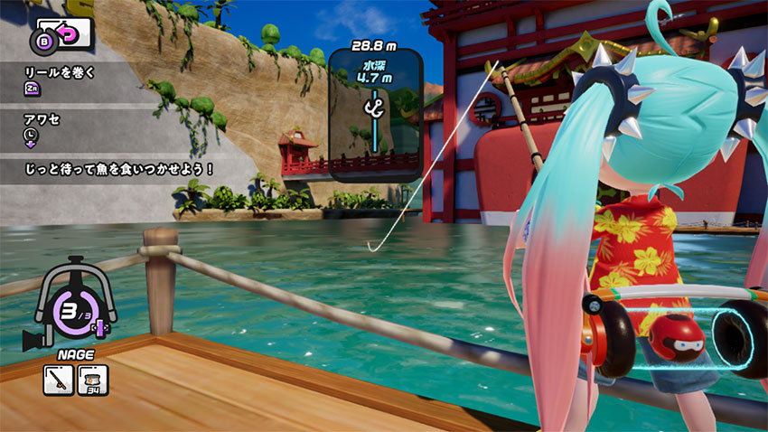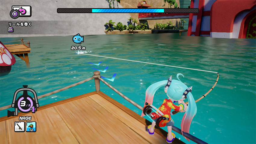 テンションを高くするには、魚と反対方向にLスティックを入力しよう。