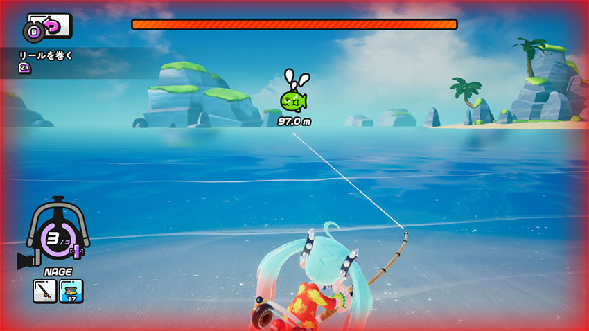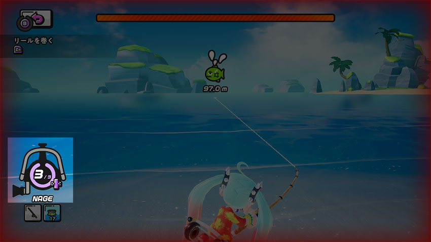 耐久力が無くなると、画面が赤くなって魚に逃げられてしまうので注意しよう!