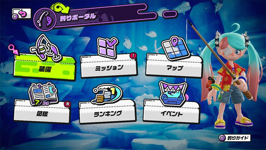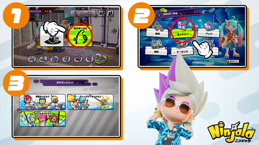 | 釣りミッション | 「常設」「図鑑」「ウィークリー」などさまざまなミッションをクリア |