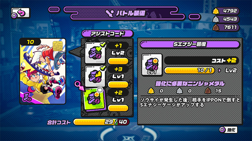 またアシストコードは、アシストコードとニンジャメダルを使って強化していくことができます。