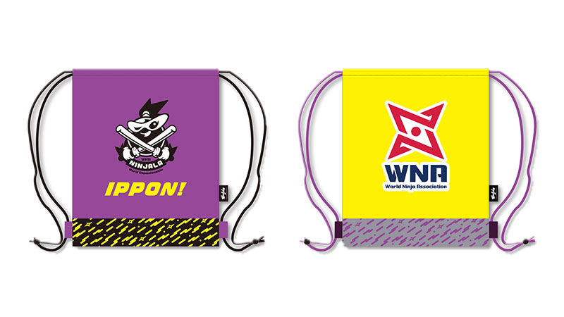 ニンジャラ大会ロゴとWNA協会ロゴがそれぞれデザインされたナップザックです。