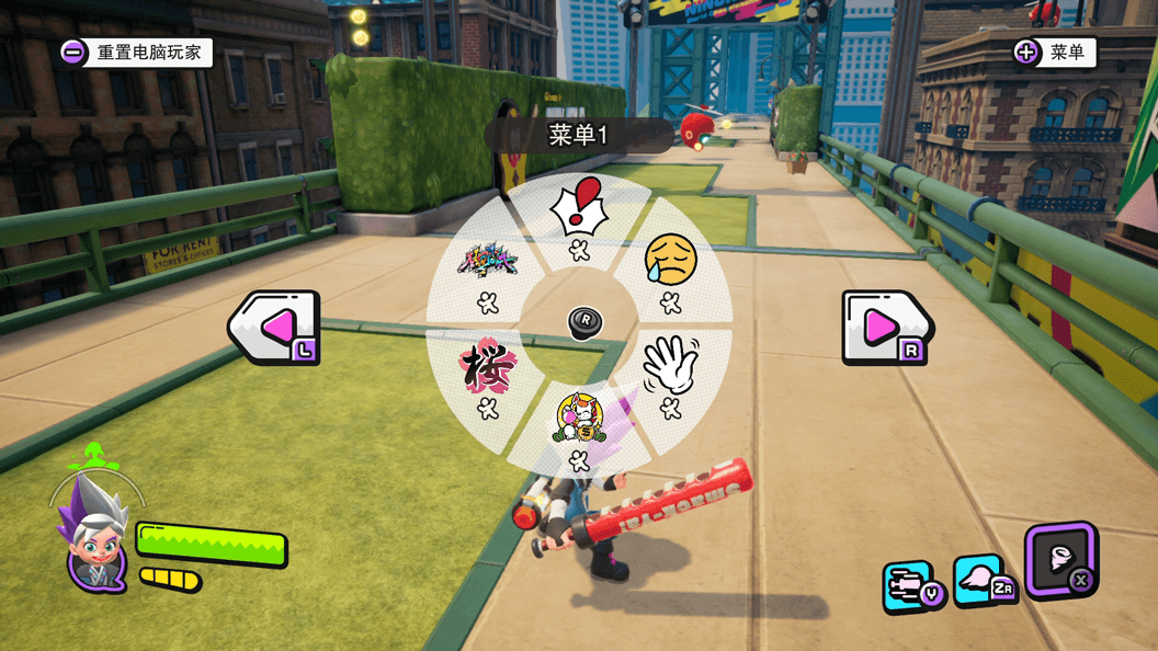 L摇杆上(或中间)的蓄力攻击为拥有口香糖爆裂性能的飞行道具攻击,