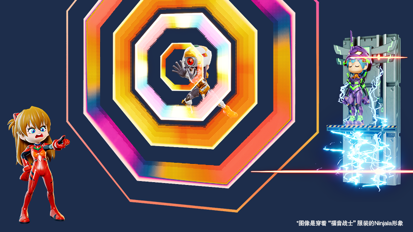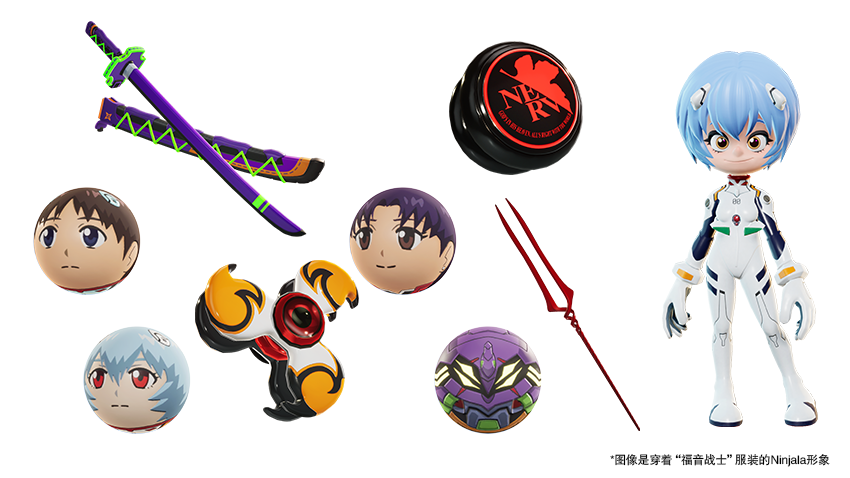 将售卖仅能在联动期间内购买,“Ninjala”ד福音战士”联动的附带赠送形象道具的忍者礼包!